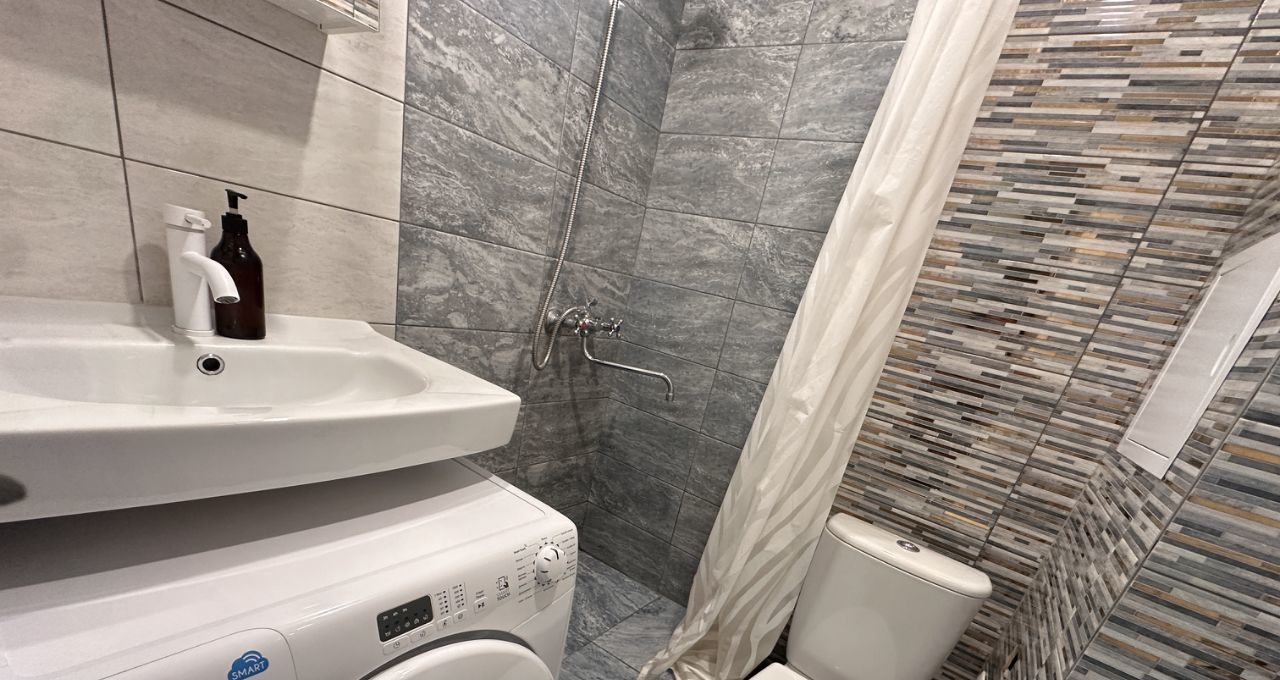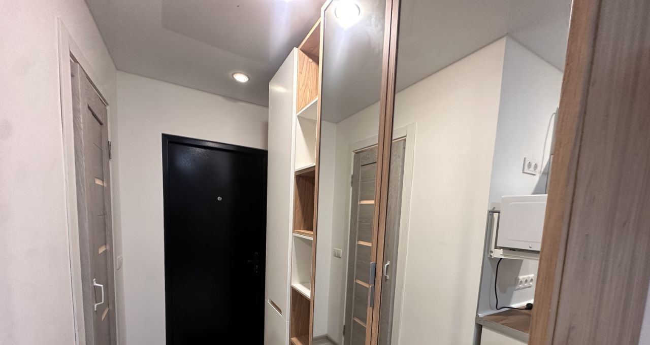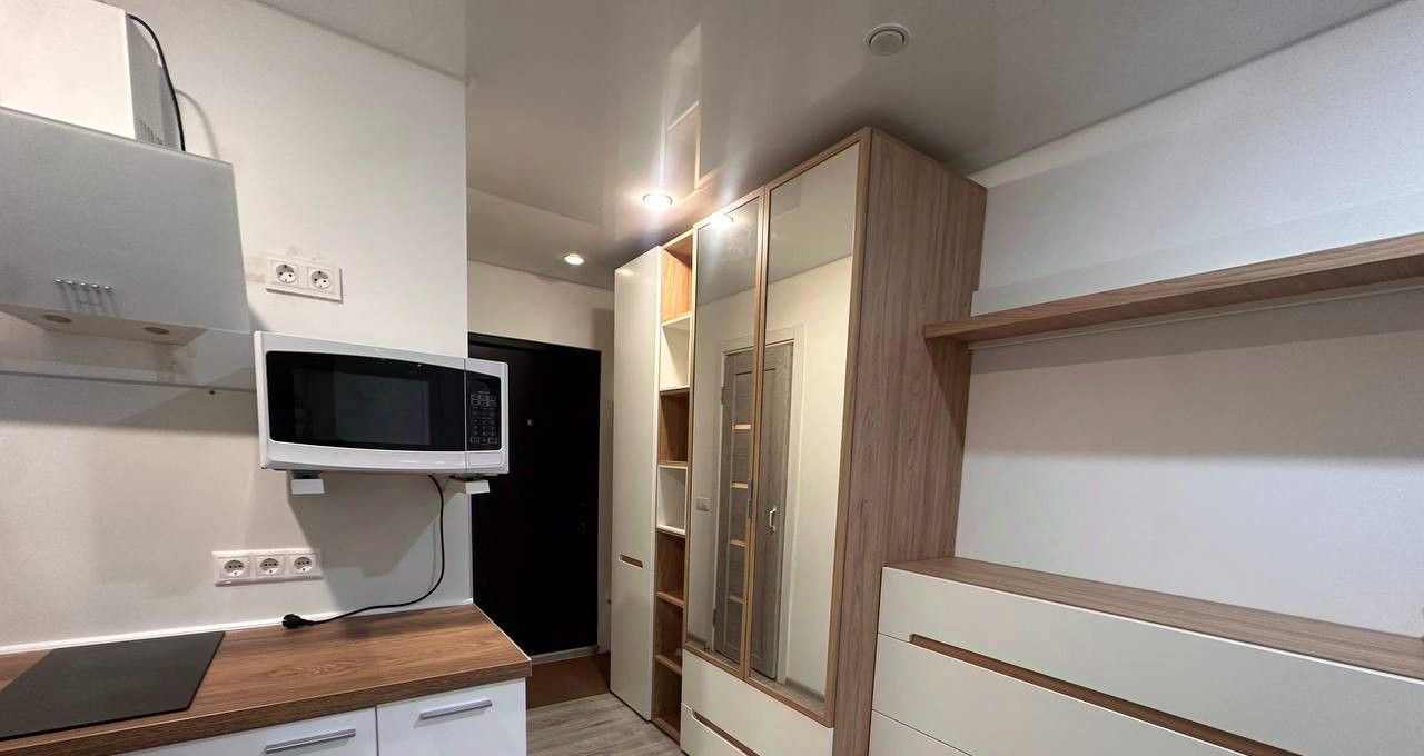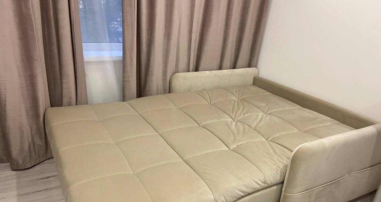 Студия предлагает современный евроремонт и полностью готова для комфортного проживания. В квартире есть вся необходимая мебель и техника: холодильник, стиральная машина, диван с ортопедическим матрасом, утюг, гладильная доска, чайник, кофемашина варочная панель и т. д. .