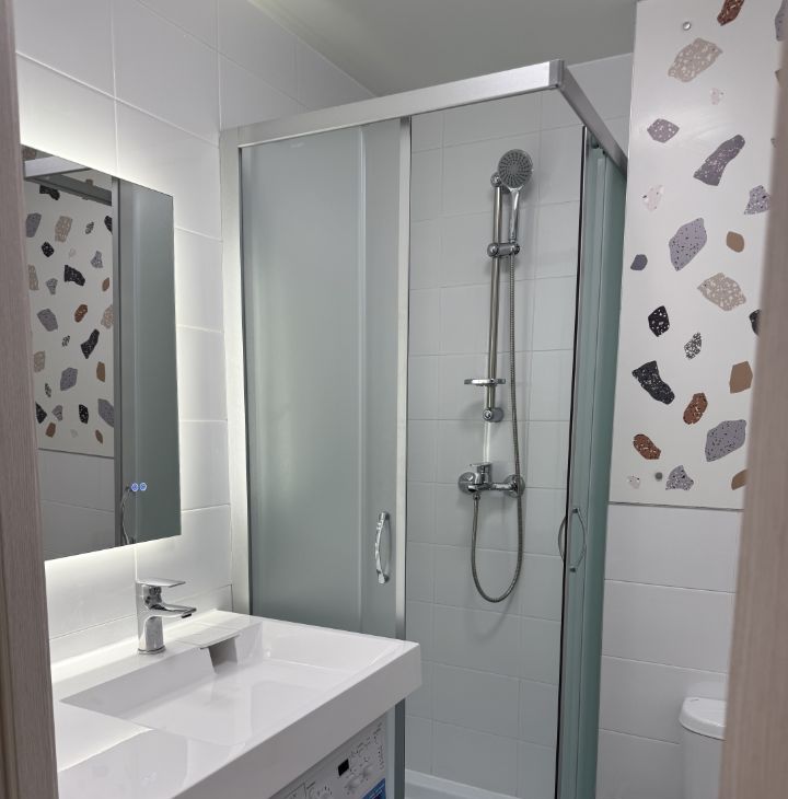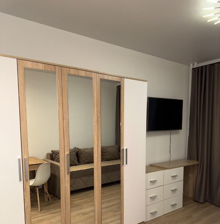 Студия после ремонта, дом 2025 года. Новая мебель и техника: ТВ, плита, микроволновая печь, холодильник,стиральная машина, электрический чайник, сушилка, удобный раскладной диван, вместительные 2 шкафа, комод, рабочая зона