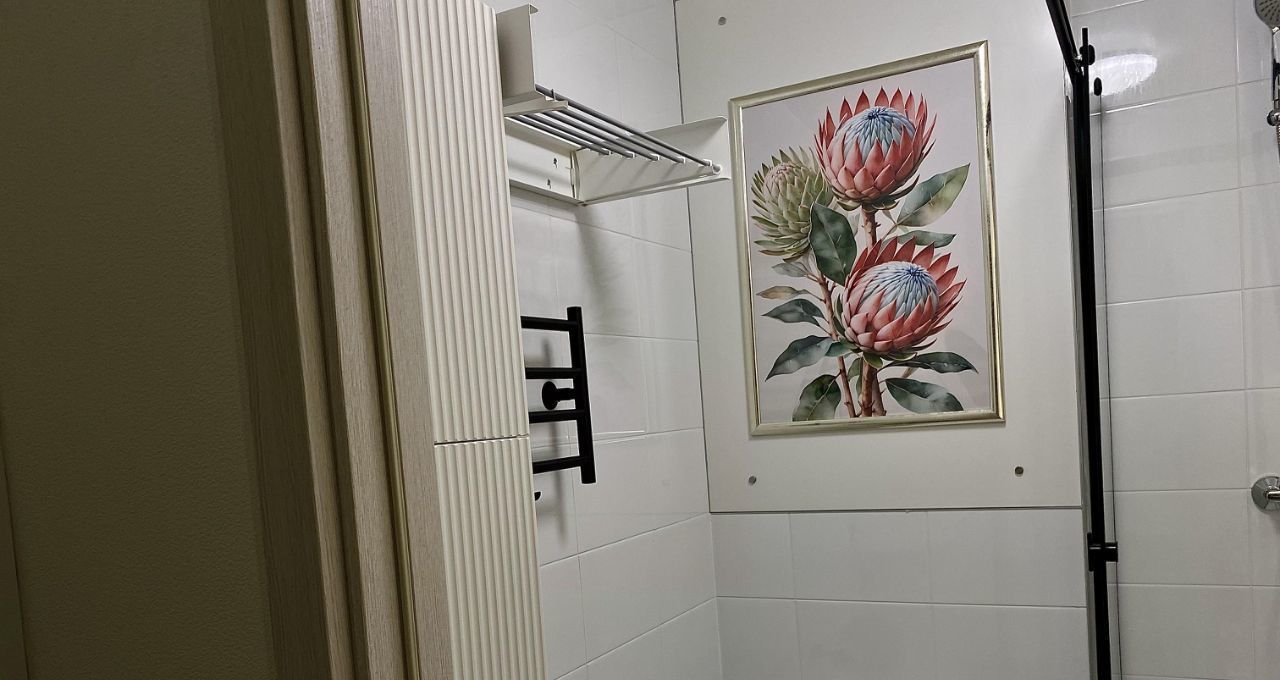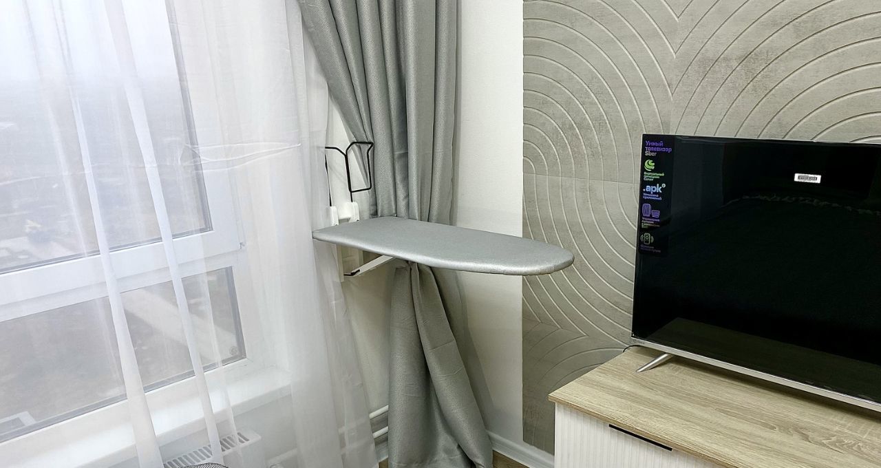 А так же встроенная гладильная доска, небольшая сушилка, тостер, пылесос, утюг и чайник