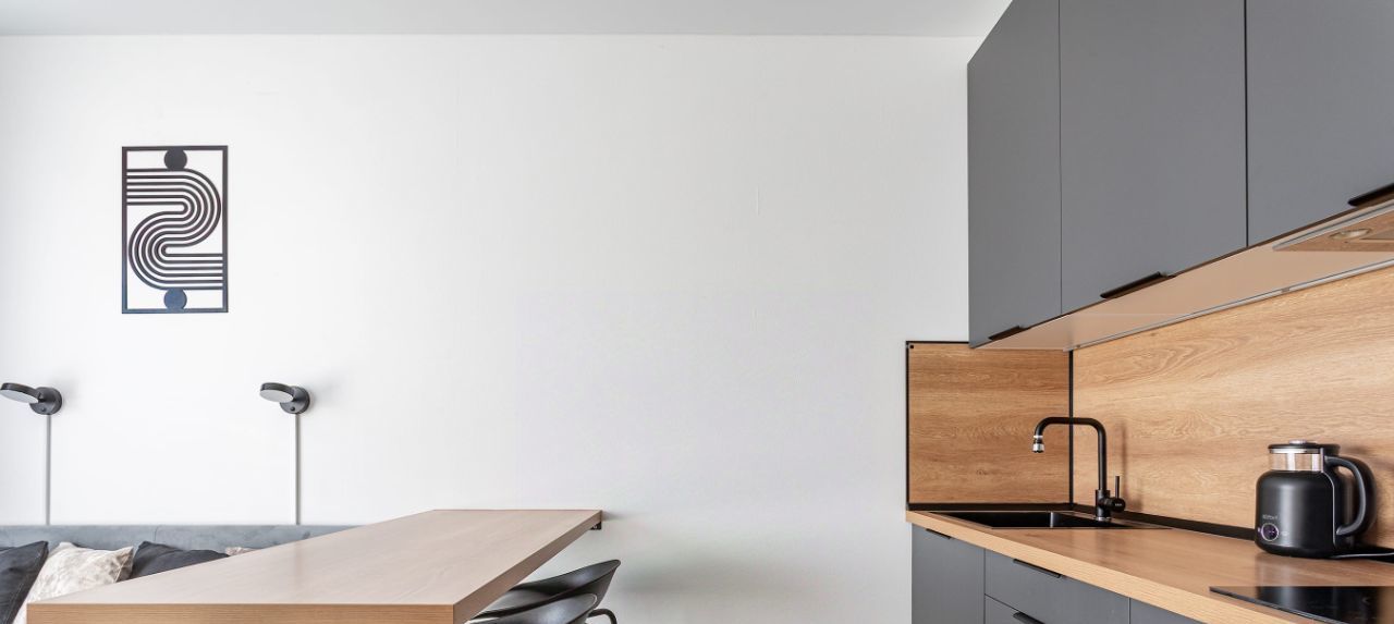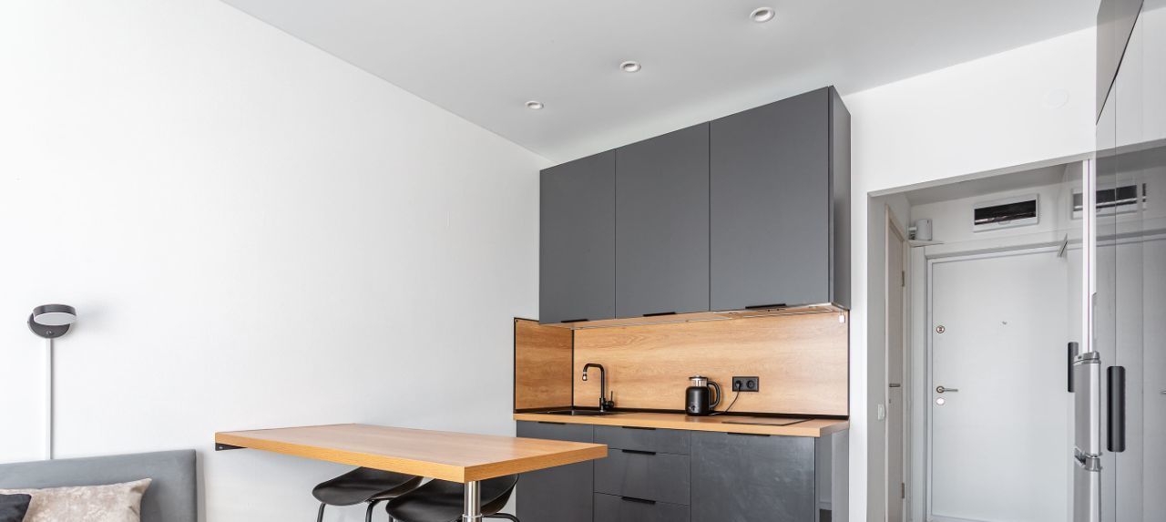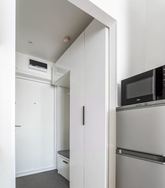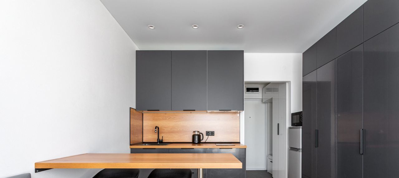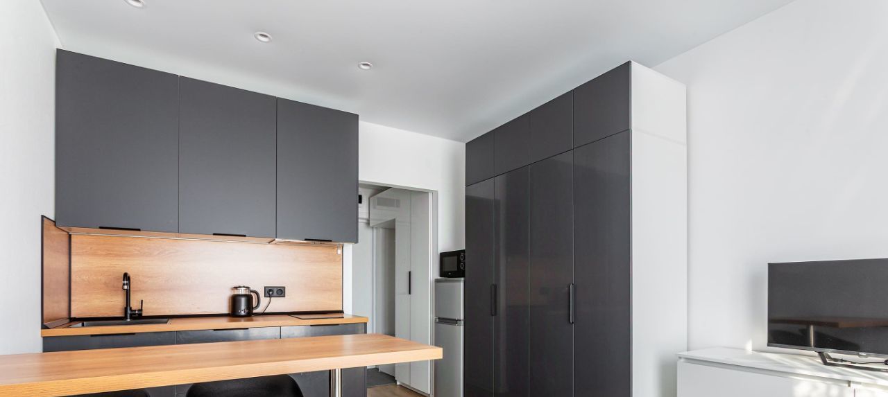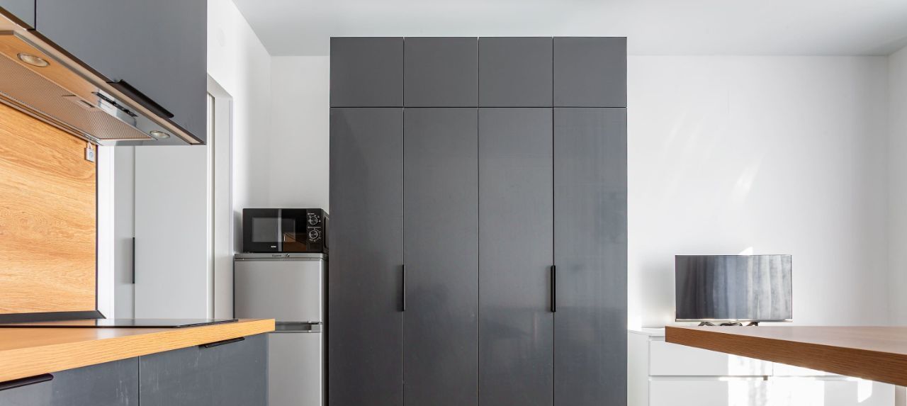 - продуманная система хранения - много шкафов и удобных зон для размещения вещей