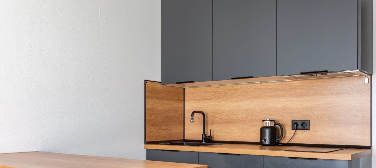 - кухонная зона с современной техникой: варочная панель, СВЧ