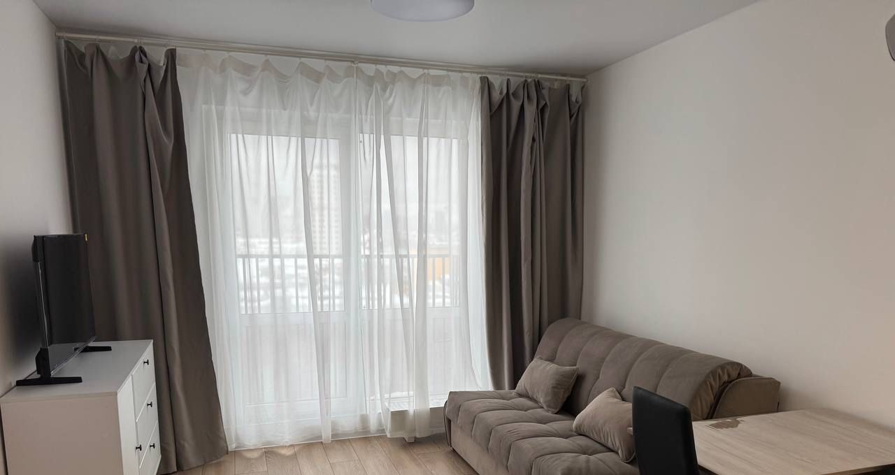 Сдаётся уютная студия с евроремонтом в новом доме.До ближайшего метро можно дойти пешком за 17 минут.