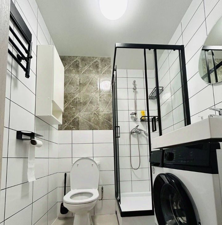 В квартире сделан качественный евроремонт. Продуманная планировка позволяет эффективно использовать пространство. В комнате и на кухне есть вся необходимая мебель. Для вашего комфорта установлены кондиционер, холодильник, стиральная машина,посудомоечная машина ,СВЧ печь, телевизор. В совмещённом санузле установлена душевая кабина.