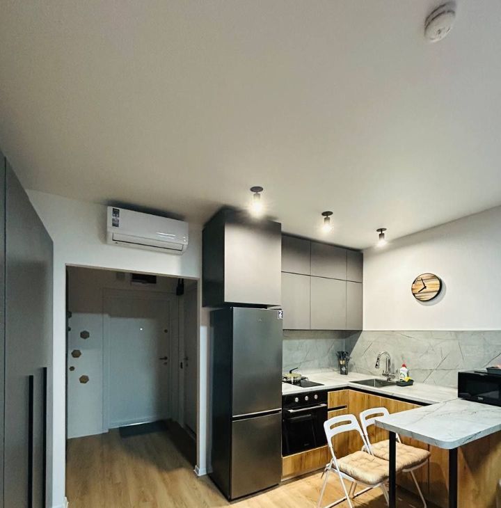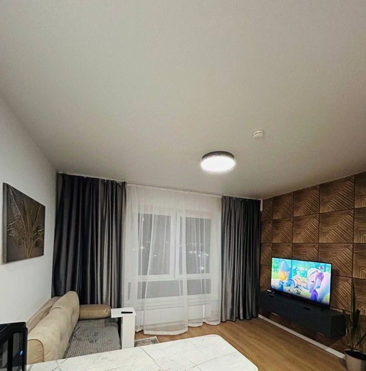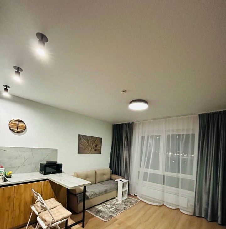 Сдаётся уютная студия в новостройке на 16-м этаже дома, построенного в 2025 году. Площадь квартиры составляет 24 кв. м, жилая площадь — 18 кв. м, а площадь кухни — 4 кв. м. Высокие потолки 2.7 метра создают ощущение простора. Окна выходят на улицу, поэтому в квартире всегда светло.