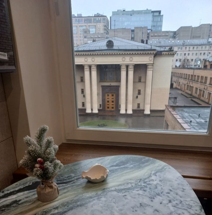 Дизайнерская студия с видом на классическую архитектуру в центре Москвы