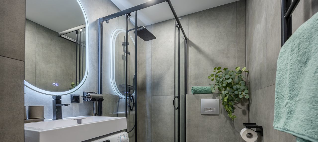 Апартаменты рассчитаны на комфортное проживание 12 гостей. Пространство функционально зонировано и включает спальную зону с двуспальной кроватью и ортопедическим матрасом, обеденную зону у окна и компактную кухонную зону.