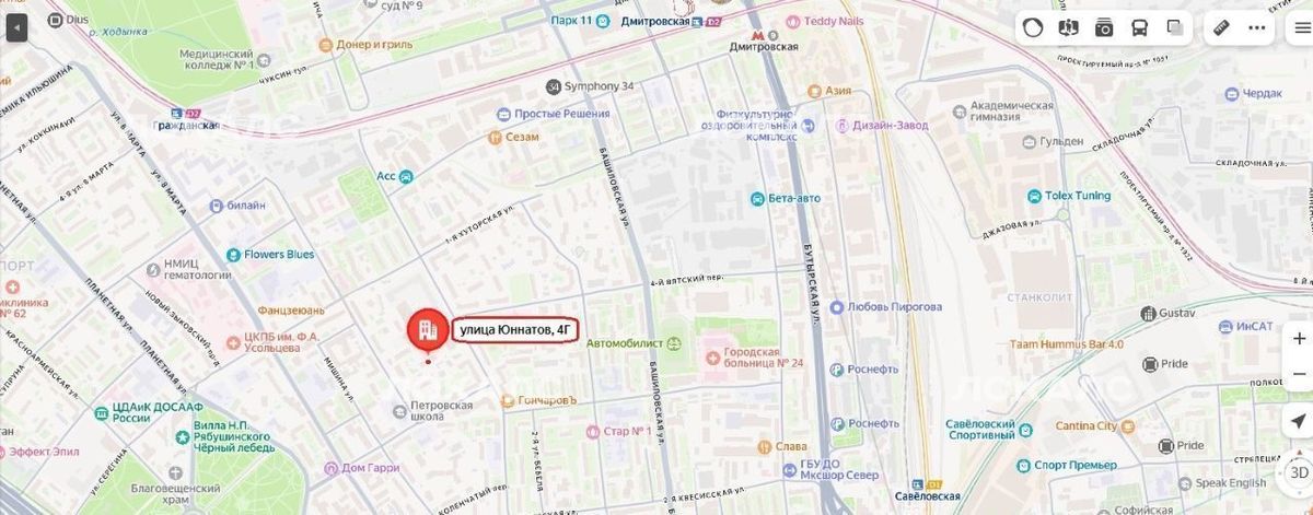 ЖК Петровский парк расположен в Савеловском районе САО на улице Юннатов, вл.4. До Ленинградского проспекта, Бутырской улицы и ТТК ехать около 5 минут. В шаговой доступности четыре станции метро: 10 мин. до Петровского парка, 15 мин. до Динамо, 20 мин. до Савеловской и Дмитровской. Рядом ветка БКЛ.