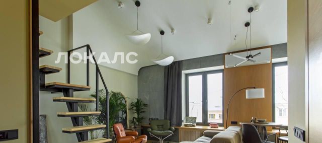 Сдаётся стильная студия-мансарда , площадью 30,1 кв. м в престижных Хамовниках, всего в 3 минутах пешком от метро Спортивная. Апартаменты находятся на 6-м этаже в многофункциональном комплексе Arkenston.