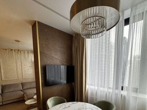 Квартира с дизайнерским ремонтом, оборудована современной мебелью и техникой. В просторной кухне есть всё необходимое: холодильник, посудомоечная машина и обеденная зона. В комнате установлены кондиционер и телевизор, что позволит вам чувствовать себя максимально комфортно. Ванная комната оснащена душевой кабиной .