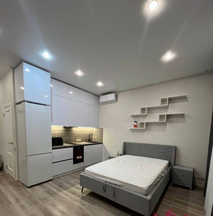 Id 59617. Современная студия с дизайнерским ремонтом в небоскребе на Василия Ланового