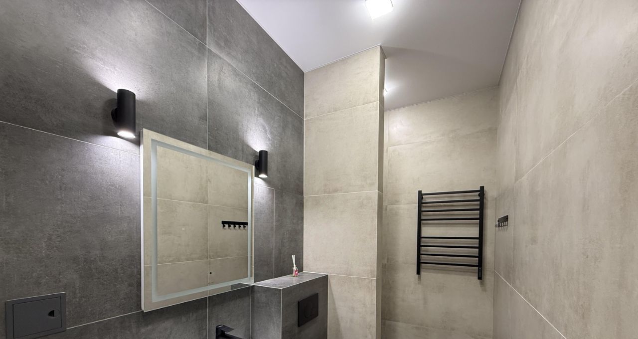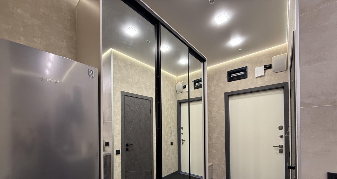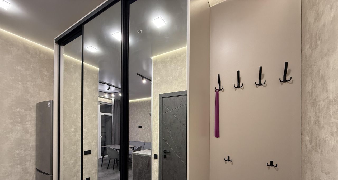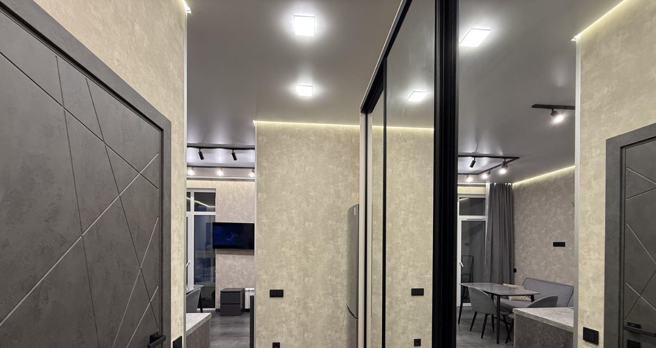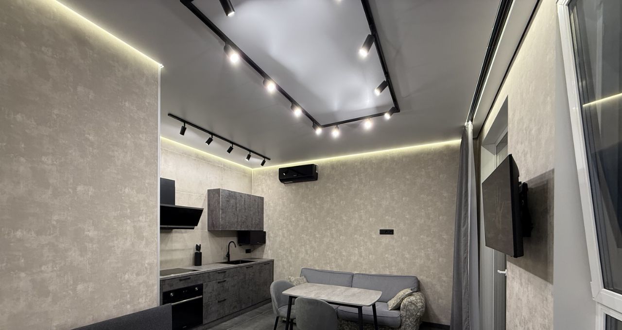 В квартире выполнен дизайнерский ремонт: высокие потолки 3.1 метра создают ощущение простора, а окна, выходящие на улицу, обеспечивают много естественного света. Жилая площадь в 16 кв. м и кухня в 7 кв. м оформлены с учётом всех современных тенденций. В кухне и комнате есть вся необходимая мебель. Для вашего комфорта установлена вся необходимая техника: кондиционер, холодильник, посудомоечная и стиральная машины, а также телевизор. В ванной комнате — современная душевая кабина.