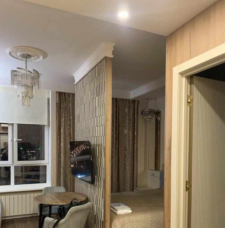 Сдается студия на длительный срок (паре, одной или двум девушкам). В квартире сделан качественный ремонт со стеновыми панелями, итальянской мраморной мозаикой, электрокарнизом для штор, шумоизоляцией стены и потолка и многое другое (Высота потолков 2.9м). В санузле установлена ванна, которую приятно принимать в свете сверкающего хрусталя на люстре (люстра дантохом). В квартире установлена техника удобная для жизни: стиральная машина с функцией сушительной стоит в отдельном сушильном блоке (со своей сушилкой, электрическим полотенцесушителем); встроенные холодильник, свч, варочная панель, духовой шкаф, посудомоечная машина, кондиционер, бойлер, видеодомофон, который позволяет управлять открытием калиток, находящихся на территории ЖК. В квартире установлены вместительные шкафы (в потолок) для хранения вещей, а также ортопедический матрац 160*200см.