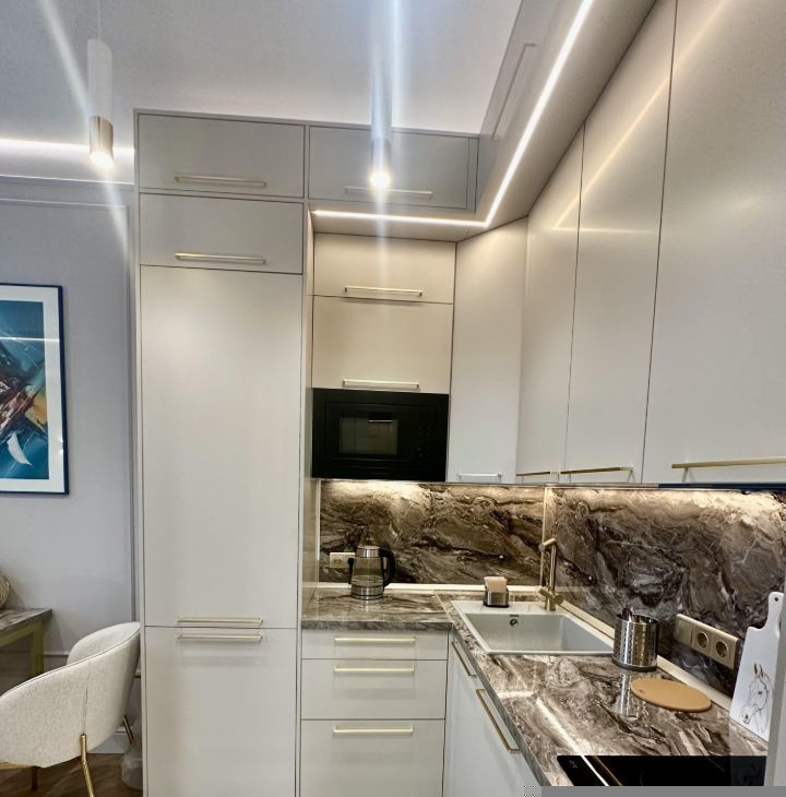 Кухня оснащена встроенной современной техникой:
