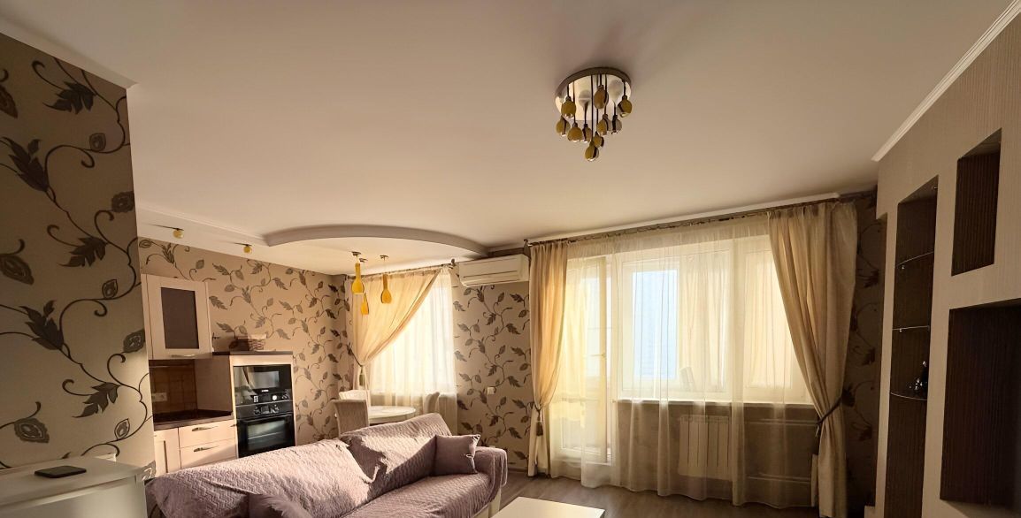 Сдаётся уютная студия на 8 этаже 25-и этажного монолитного дома 2007 года постройки. В доме 1 подъезд, видеонаблюдение, консьерж. Квартира очень теплая и светлая. В зоне прихожей есть встроенный шкаф для верхней одежды и обуви и отдельная большая гардеробная. Основное спальное место: кровать 160*200 с хорошим матрасом, а также есть дополнительное место - удобный диван. Кухня оборудована всей необходимой техникой и посудой. В наличии: встроенные холодильник, варочная панель, духовой шкаф, микроволновая печь, посудомоечная машина. Просторный совмещенный санузел оборудован современной сантехникой, есть гигиенический душ, в шкафу установлена стиральная машина. На теплом балконе установлено рабочее место и сушилка для белья. Квартира сдаётся на длительный срок для проживания без животных. Курение в квартире запрещено.