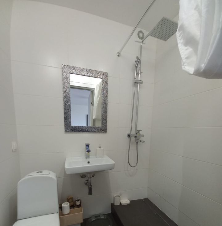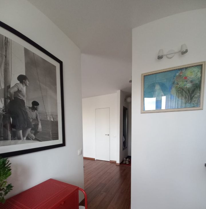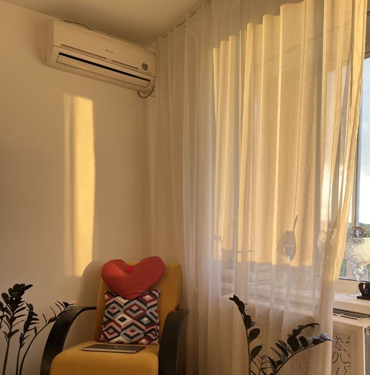 В квартире есть все для комфортного проживания: жилая зона, отделенная кухня, лоджия с панорамными окнами, удобная отдельная гардеробная, санузел с душевой, кондиционер и вся необходимая техника, посуда и мебель. Формат заезжай и живи. Интерьер лаконичный, но атмосферный: светлая база, пол-ламинат под дерево, акцентная мебель и приятные детали создают ощущение уюта без визуального шума.