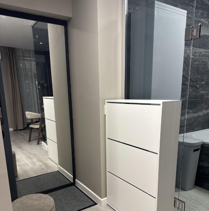 В квартире ещё никто не жил, всё новое: мебель, техника, текстиль.