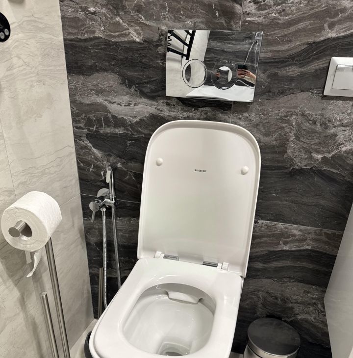 • Ванная комната с дорогой сантехникой Jacob Delafon, отделена стеклом