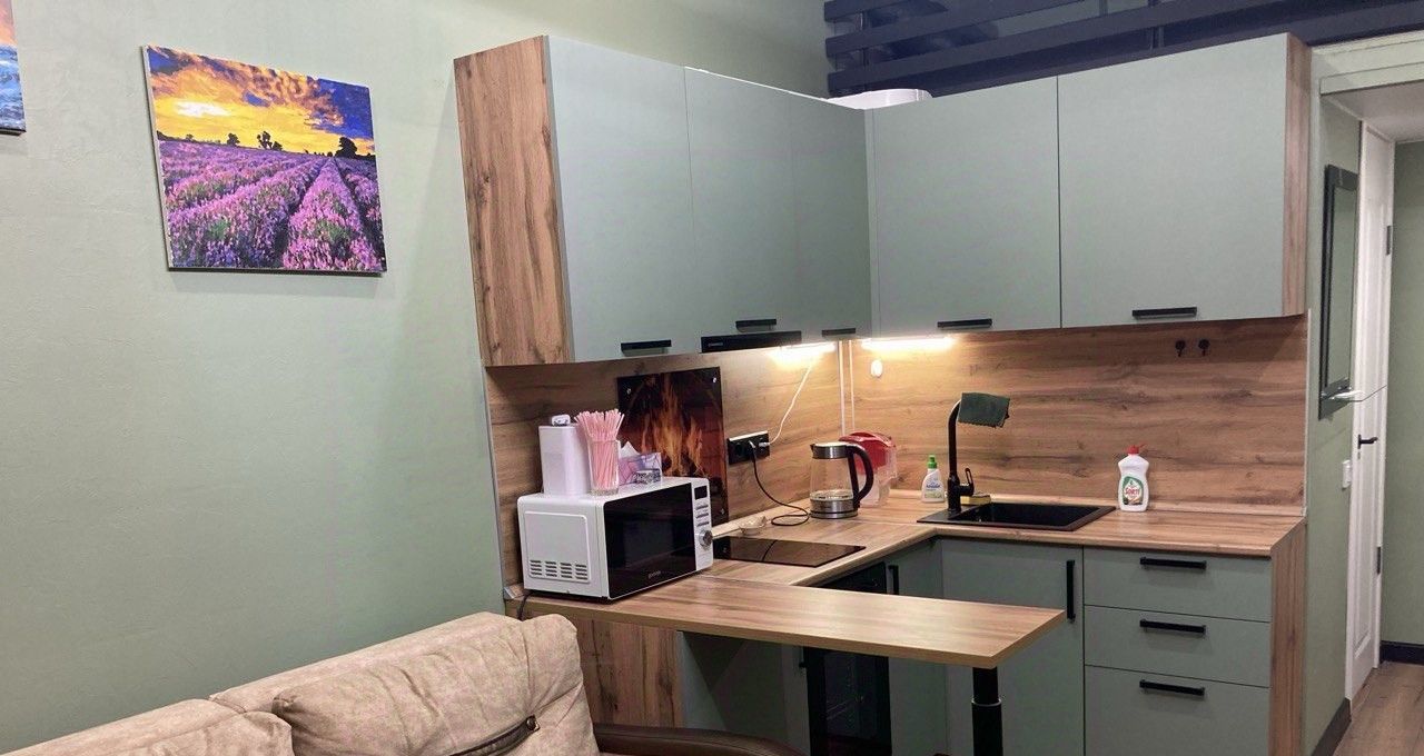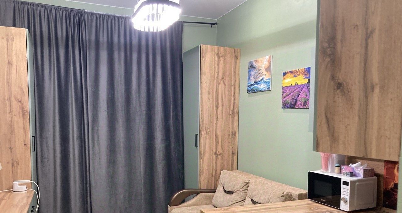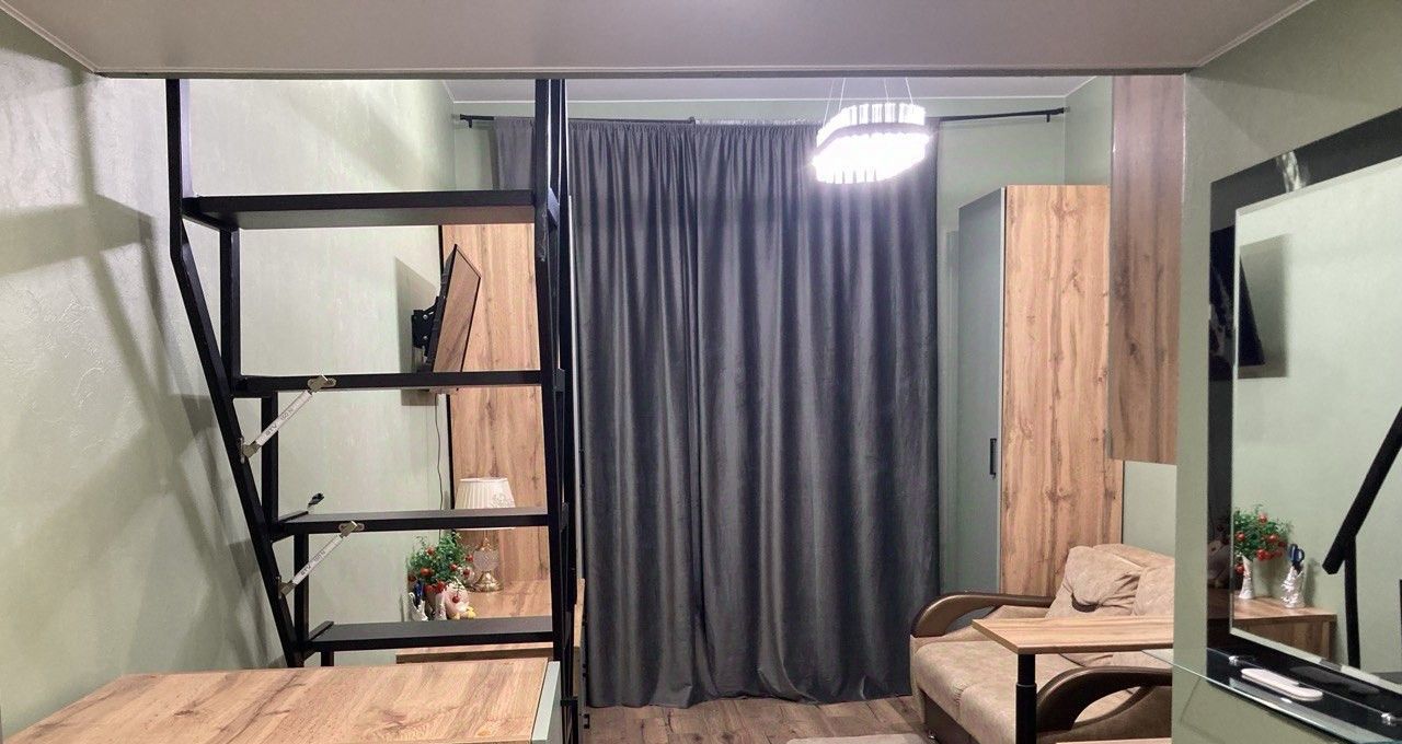 Студия расположена на первом этаже, общая площадь составляет 20 кв. м, из них жилая площадь — 16 кв. м, площадь кухни — 4 кв. м., спальное место расположено на втором этаже, куда можно подняться по лестнице!!! В студии имеется все необходимое для комфортного проживания: свежий ремонт, мебель и бытовая техника! В самом доме проведен капитальный ремонт, отремонтированы подъезды, крыша.