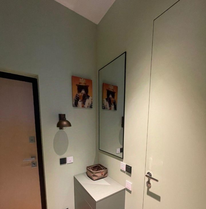 В отделке использовались материалы высокого качества. Стены выкрашены краской Dulux Professional, установлены двери Волховец высотой 2,40 м! Смесители - Grohe, инсталляция - Geberit, розетки Шнайдер, батареи - Zehnden. На полу паркетная доска, керамогранитные подоконники, тёплые полы .