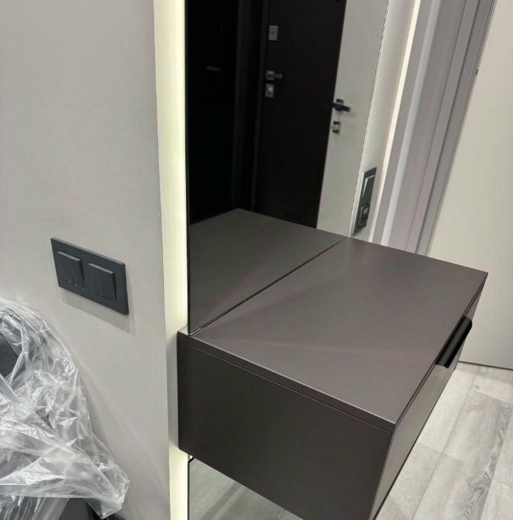 - Шкаф с подсветкой и продуманная система хранения.