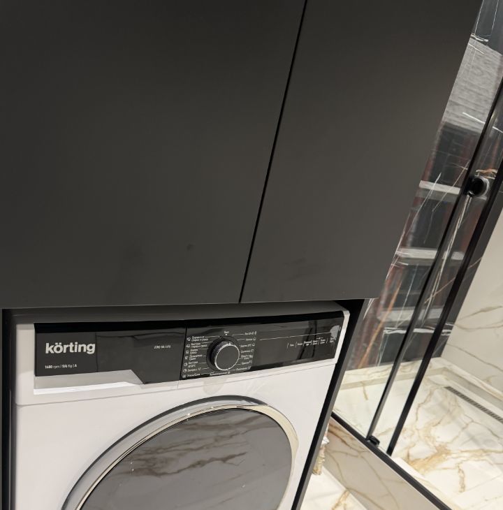 Элитная техника немецкого производства: Стиральная машина с сушкой, духовой шкаф с функцией микроволновой печи, индукционная плита, холодильник, кондиционер, вытяжка, посудомоечная машина, ТВ и японский фильтр для очистки воды — все для вашего удобства и безопасности.