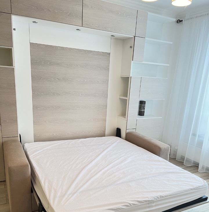 Чистота и спокойствие! Сдается студия в отличном состоянии, свежий ремонт, укомплектована необходимой мебелью и бытовой техникой для нормального проживания. Кухня под единой столешницей, встроенные холодильник, духовой шкаф, микроволновка, стол, стулья, 2-х спальная кровать откидная, диван. Совмещенный сан/узел в плитке до потолка, стиральная машина. В коридоре огромный шкаф. Металлическая дверь. Закрытый двор, без машин. Въезд через шлагбаум. Охрана дома: видеонаблюдение. Пространство студии комфортно для жизни.