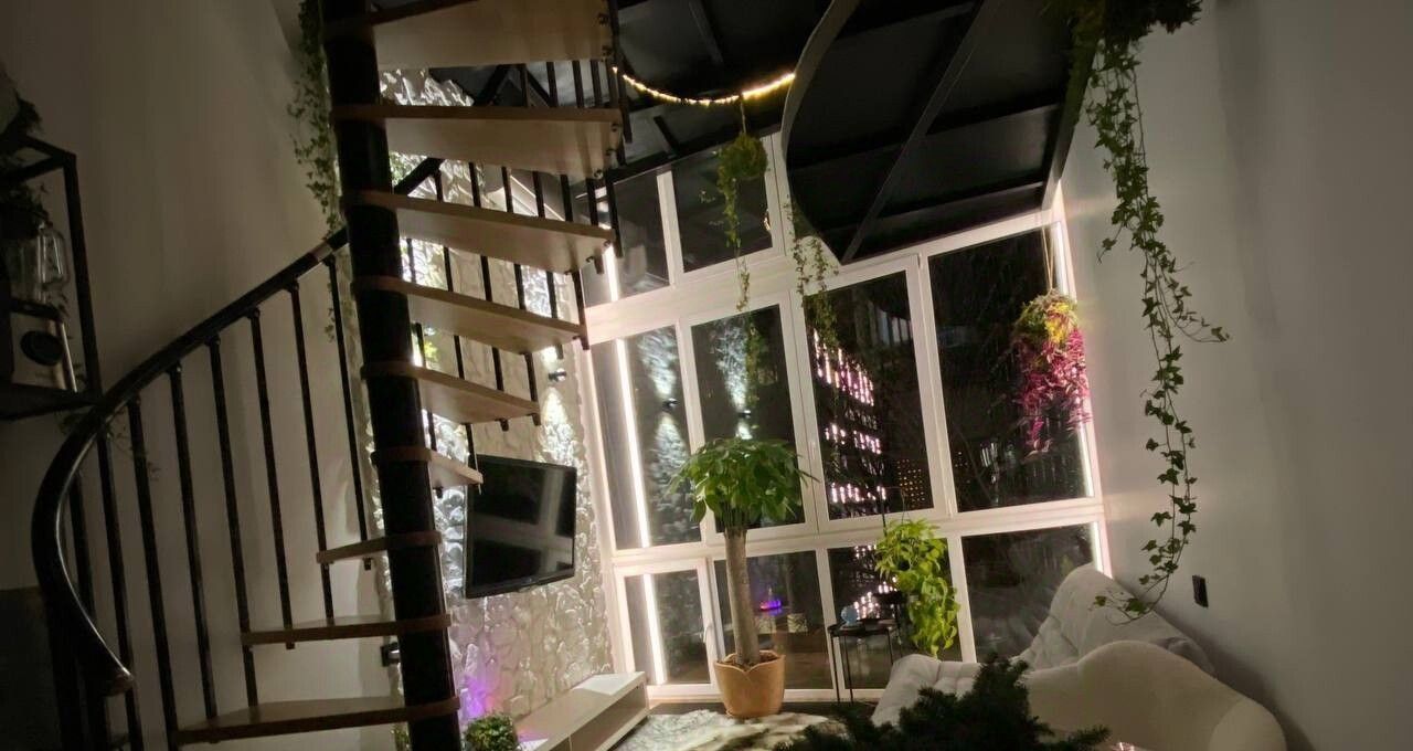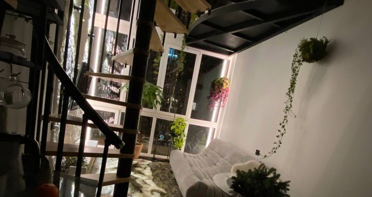 Сдаются трехуровневые дизайнерские апартаменты с панорамными окнами, верандой и выходом на просторную крышу. Вайбовая студия создавалась фитодизайнером для личного проживания, творческой работы и комфортного отдыха. Пространство оснащено всем необходимым для жизни, релакса и творчества! К вашим услугам гостиная с потрясающим видом на Москву реку и сверкающие башни., функциональная кухня со всей необходимой техникой: посудомоечная машина, духовка, индукционная панель, футуристическая мультиварка с опцией попкорн, микроволновка, вытяжка.