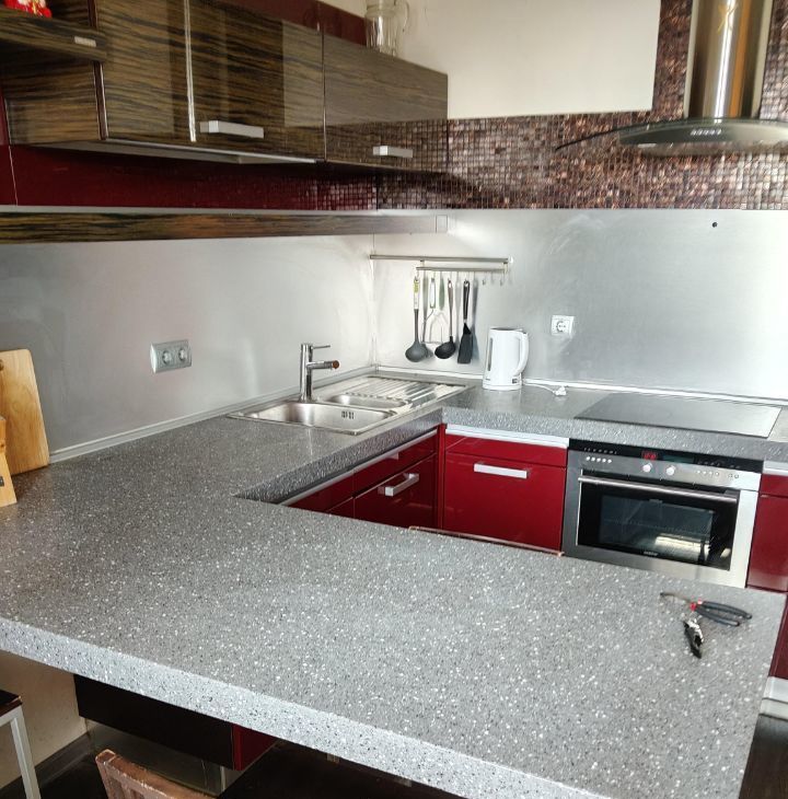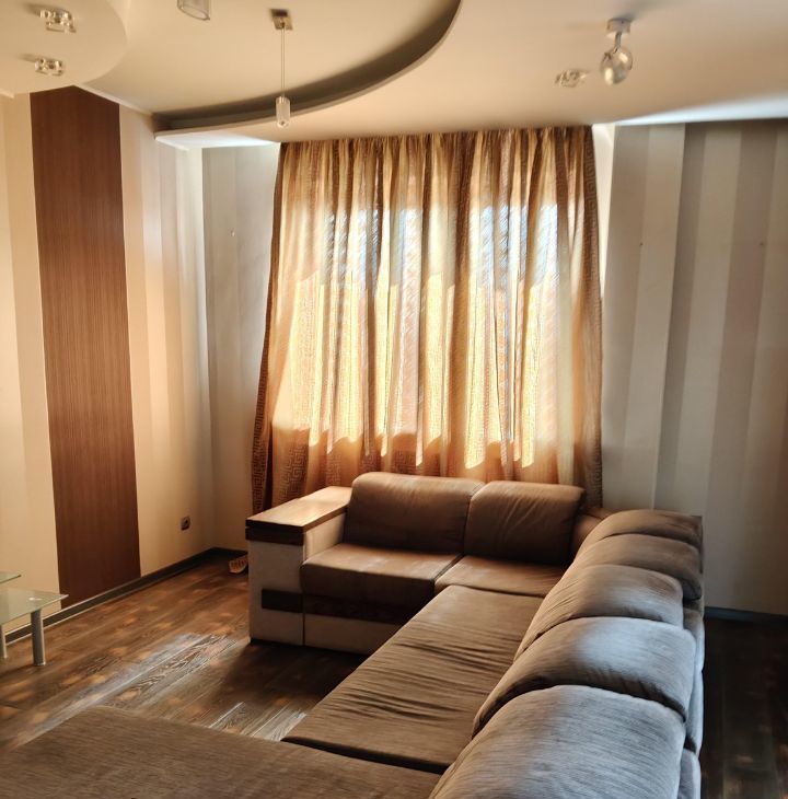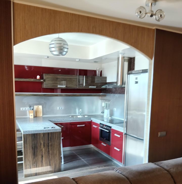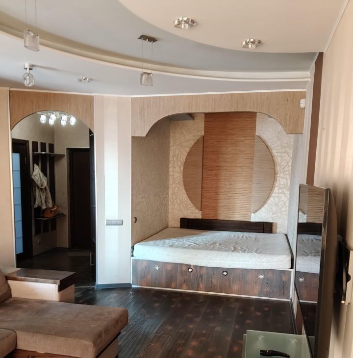 В квартире сделан свежий евроремонт. Пространство грамотно зонировано, что создает ощущение уюта и комфорта. Окна выходят во двор, поэтому в квартире тихо и спокойно. В наличии вся необходимая мебель на кухне и в комнате. Из техники есть кондиционер, холодильник, телевизор и стиральная машина, посуда, пылесос. Ванная комната оборудована ванной и душевой кабиной, что позволяет выбрать наиболее удобный вариант для водных процедур.