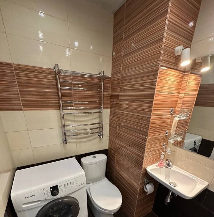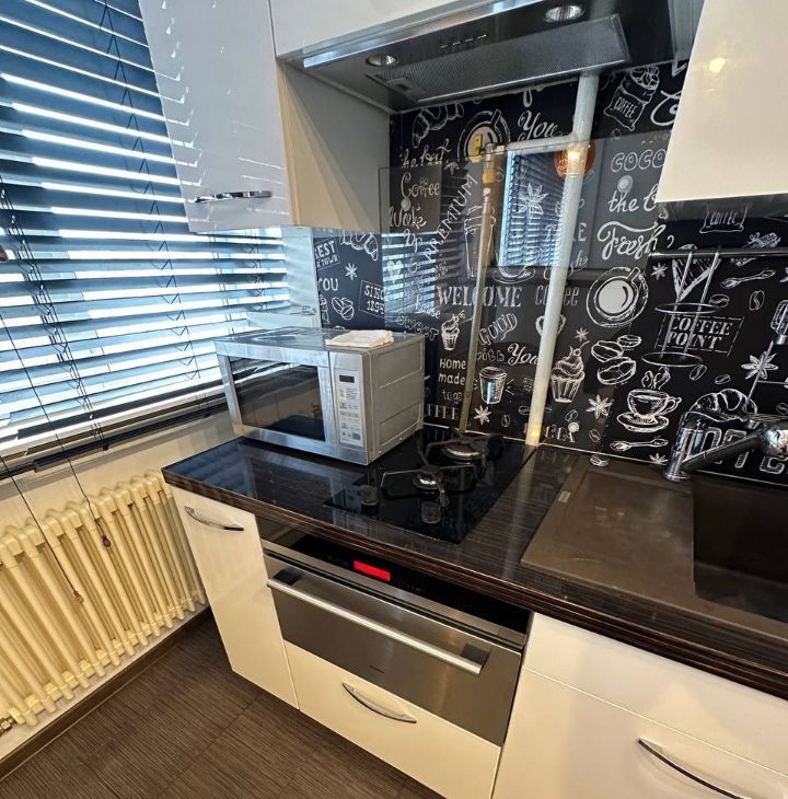 Встроенная кухня, двухкамерный холодильник, двух-спальная кровать с ортопедическим матрасом, продуманная вместительная система хранения с зеркалами, стеклопакеты, стильные деревянные жалюзи, хорошо защищают от солнечного света, интернет, стиральная машина-автомат, зеркальный шкаф в ванной комнате , душевая кабина.