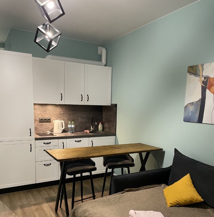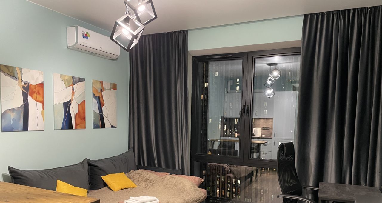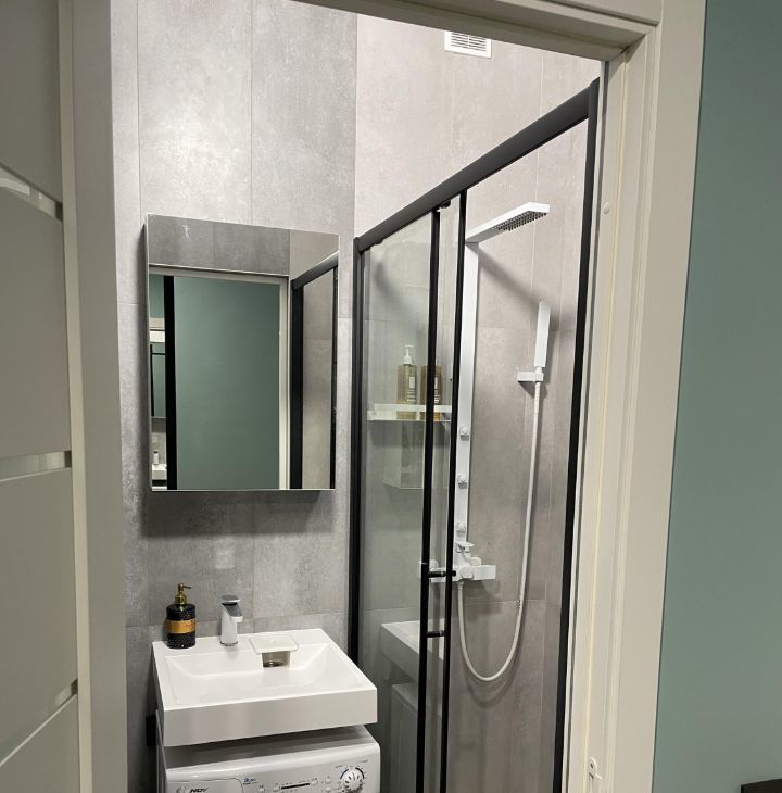 В квартире сделан дизайнерский ремонт. Пространство студии продумано до мелочей: современная мебель на кухне и в комнате, что делает проживание максимально комфортным. Вся необходимая техника в наличии: кондиционер, холодильник, посудомоечная и стиральная машины, телевизор. В ванной комнате установлена душевая кабина, что добавляет удобства в повседневную жизнь.