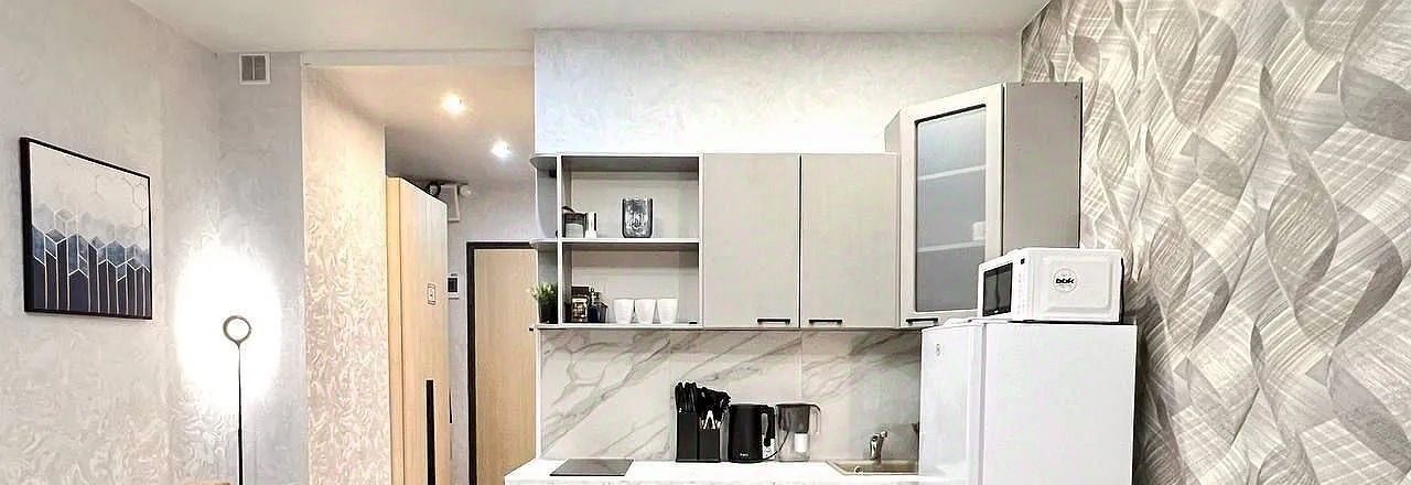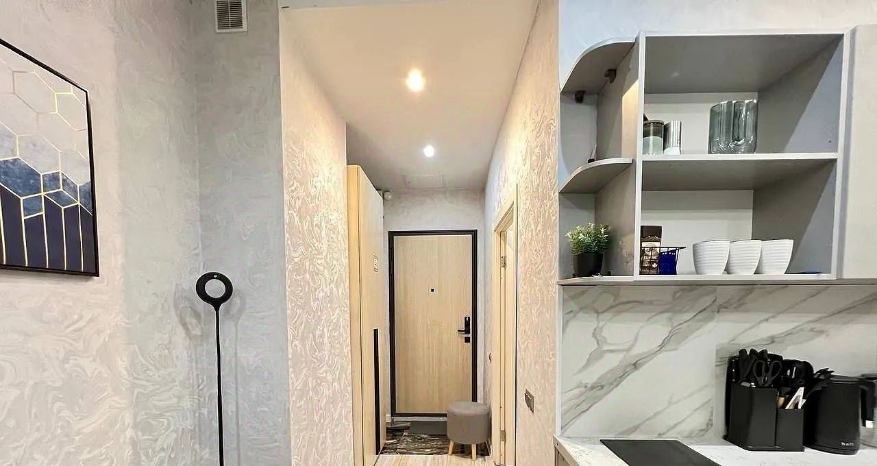 В квартире выполнен дизайнерский ремонт, в каждой детали чувствуется вкус и стиль. Пространство студии грамотно зонировано, есть вся необходимая мебель как на кухне, так и в комнате. Оснащение техники включает кондиционер, холодильник, посудомоечную машину, телевизор и стиральную машину, что обеспечит комфортное проживание. Санузел совмещенный, с ванной, что особенно приятно после насыщенного дня.