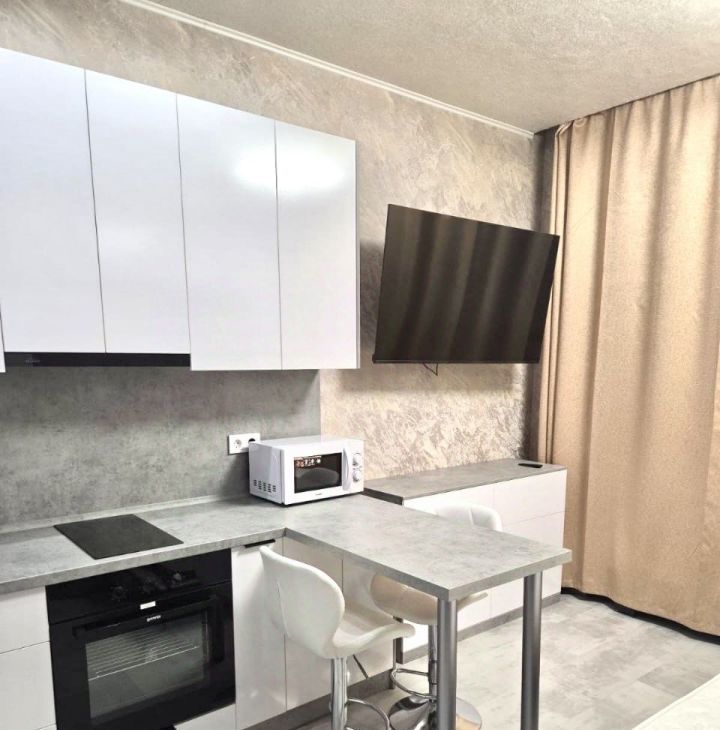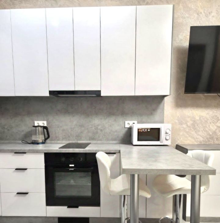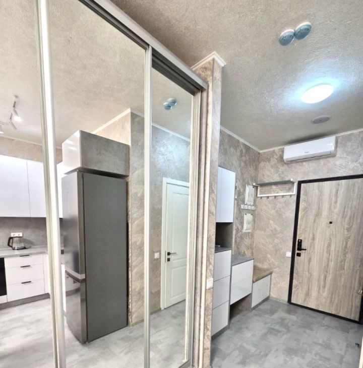Квартира площадью 25 м² выполнена с полной современной отделкой и полностью укомплектована всей необходимой техникой и мебелью. В вашем распоряжении стильная мебель, полноценная кухня с техникой (посудомоечная машина, холодильник, варочная панель), кондиционер, стиральная машина, телевизор и высокоскоростной интернет. Высокие потолки 2.8 метра и панорамные окна создают ощущение простора и наполняют пространство светом.