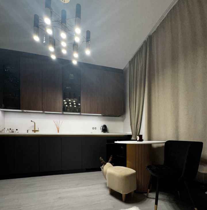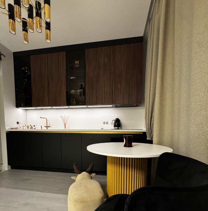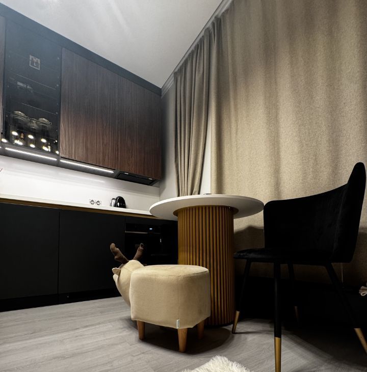 Квартира с дизайнерским ремонтом, полностью укомплектована всей необходимой мебелью и техникой. В комнате и на кухне есть удобная современная мебель. В квартире установлены кондиционер, холодильник, посудомоечная и стиральная машины. Санузел совмещённый, оборудован душевой кабиной. Окна выходят во двор, поэтому в квартире всегда тихо и спокойно.