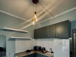 Есть всё необходимое для жизни и комфорта: раскладывающийся удобный диван, телевизор, посудомоечная машина, микроволновая печь, вытяжка, стиральная машина, кондиционер, пылесос.