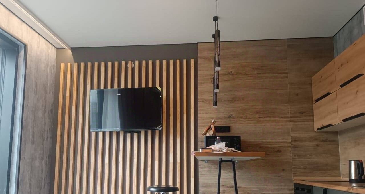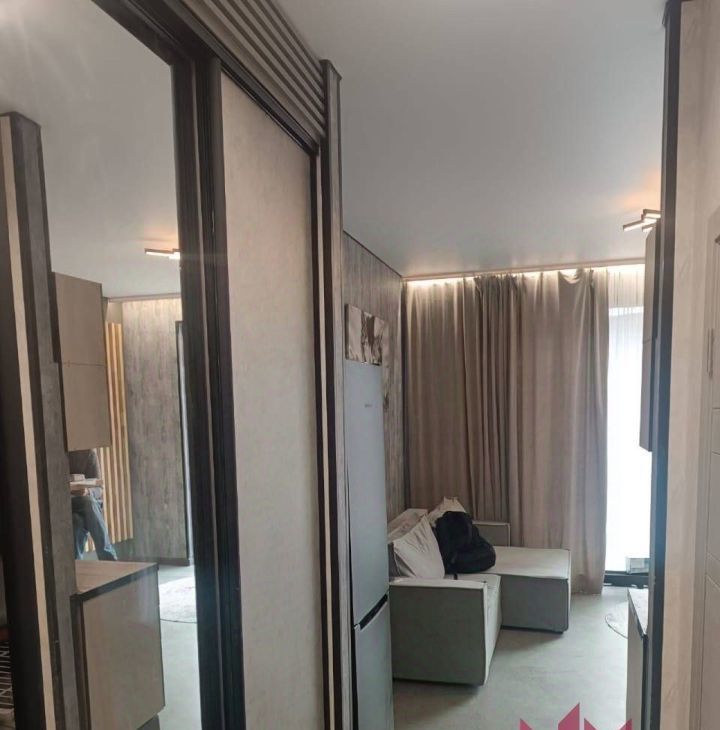 Квартира площадью 25 м² демонстрирует блестящее планировочное решение: просторная кухня-гостиная площадью 15 м² объединена с уютной зоной отдыха. Особую ценность добавляет уникальная техническая оснащенность: вместо традиционного телевизора установлена система с выдвижным экраном и проектором, превращающая вечерний досуг в приватный киносеанс. Кухня оборудована полным комплектом встроенной техники премиум-класса, включая посудомоечную машину. Вся необходимая мебель, техника и предметы обихода уже на месте, что позволяет заехать в день заключения договора.