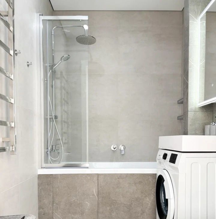 - санузел (ванна, зеркало, стиральная машина, зеркало с подсветкой)