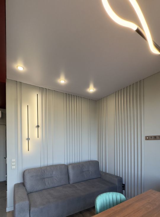 Качественный ремонт, высокие потолки. Студия оборудована всей необходимой НОВОЙ техникой: индукционная плита, вытяжка, стиральная машинка, посудомойка, холодильник, кондиционер, электрический чайник.