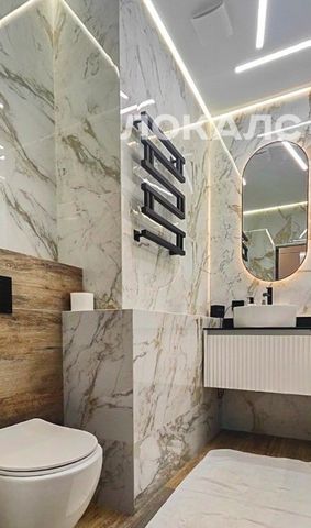 В квартире установлен теплый пол по всей площади, а система "умный дом" обеспечивает современное и удобное управление всеми устройствами. Управление техникой осуществляется голосом через станцию Алиса: освещение, потолочная светомузыка, вытяжка и все электроприборы — всё управляется голосовыми командами. В квартире есть возможность установки ламп для живых растений. Также в квартире установлены электрокарнизы с функцией голосового управления. Полы — кварцвинил и плитка. Окна выходят во двор, на восток.
