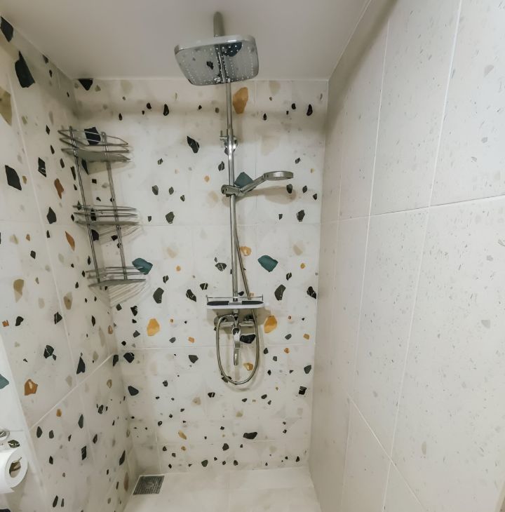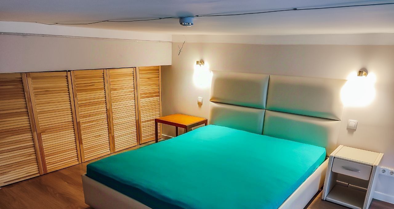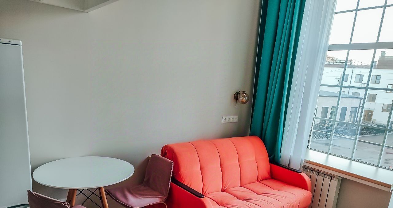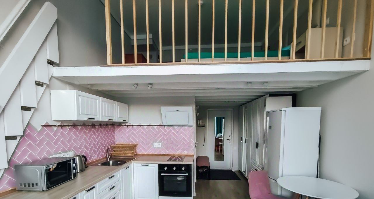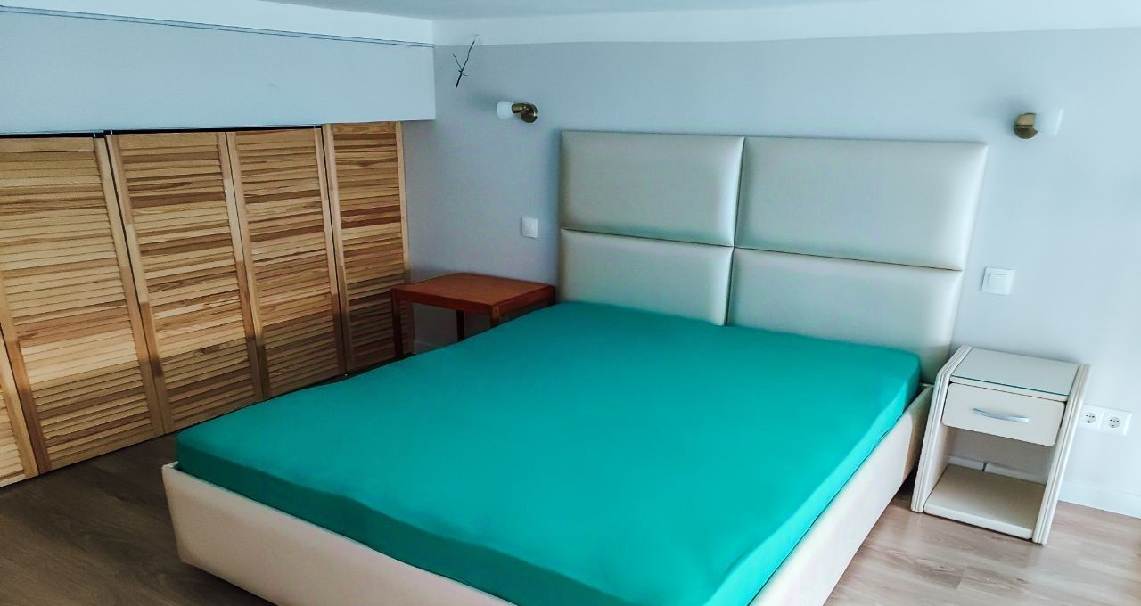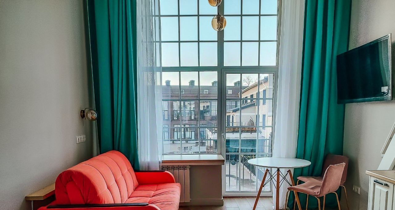 Студия с современным дизайном оборудована двуспальной кроватью, новым матрасом, блэкаут шторами, шкафами для одежды, посудой и телевизором, стиральной машинкой и кондиционером. Всё необходимое для комфортного проживания имеется.