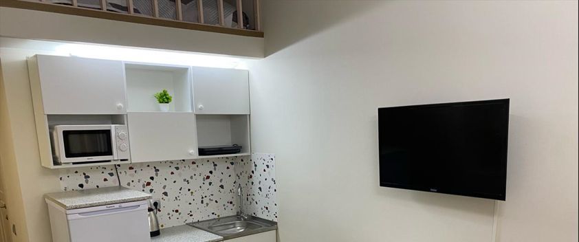 Студия меблирована, оснащена всей необходимой техникой (телевизор, стиральная машина, холодильник, варочная панель, микроволновка, чайник), посуда, пастельные принадлежности, 2 комплекта пастельного белья, гладильная доска, утюг, в шкафах вешалки, WI-FI.