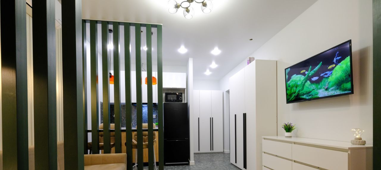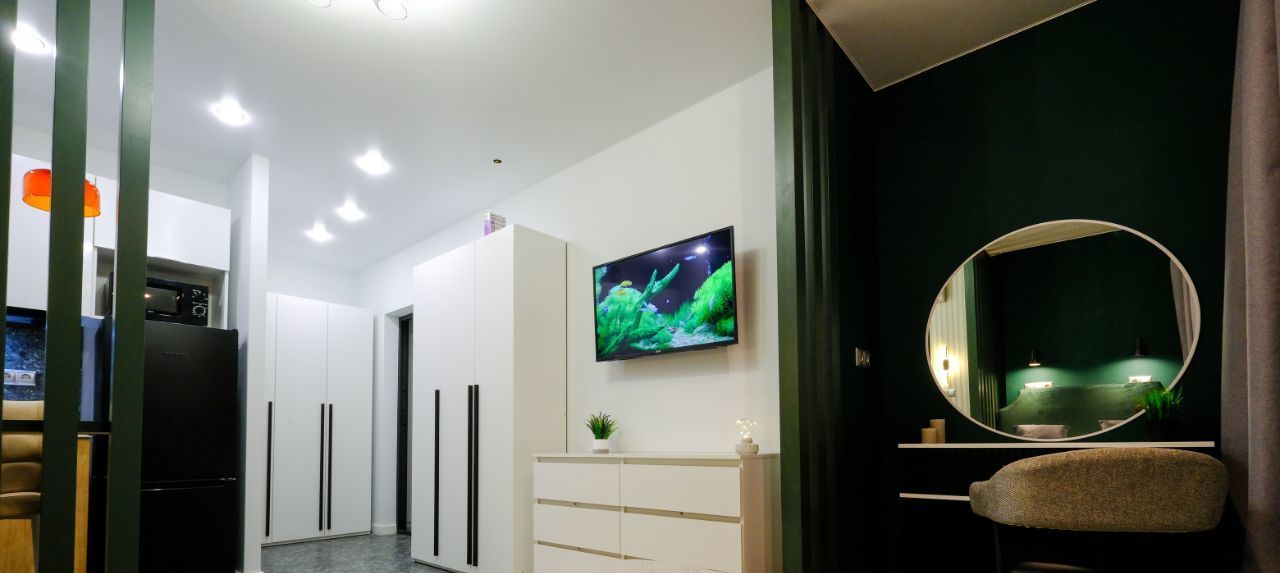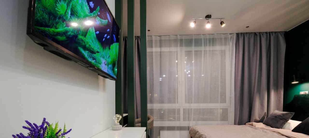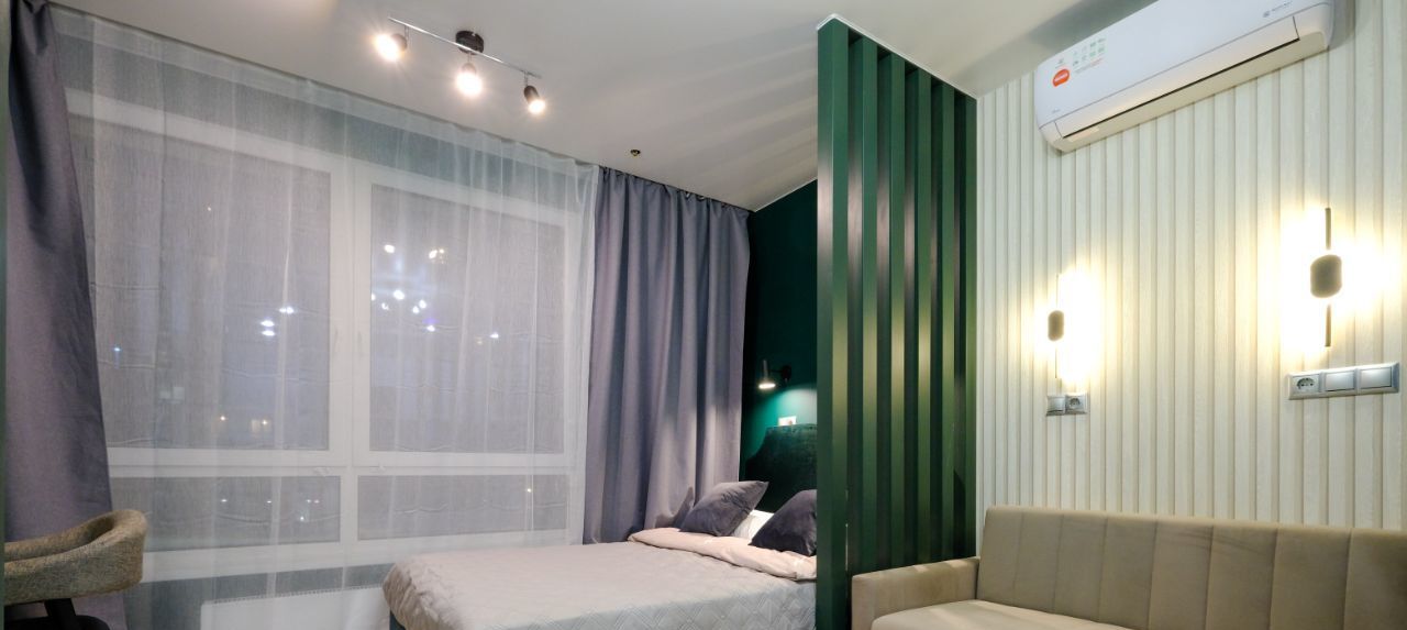 В квартире выполнен дизайнерский ремонт, который создаёт атмосферу уюта и стиля. В комнате установлены телевизор и кондиционер, а в совмещённом санузле предусмотрена душевая кабина.
