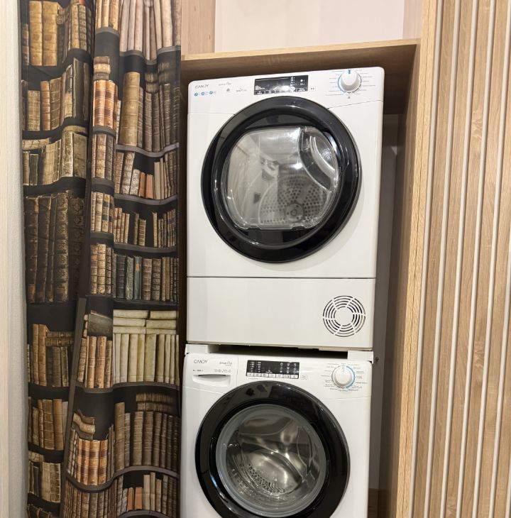 Апартаменты оснащены всем необходимым: стиральная и сушильная машина, большой двухкамерный холодильник, посудомоечная машина, винный шкаф, диван-кровать, просторный санузел, много мест хранения.