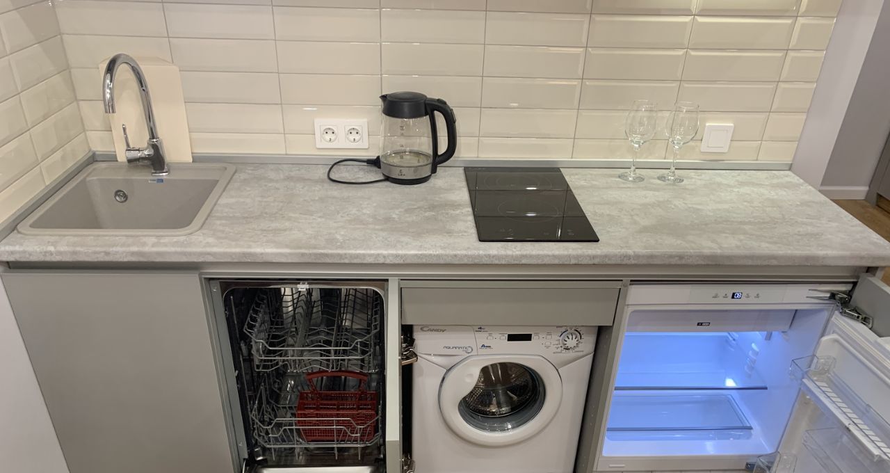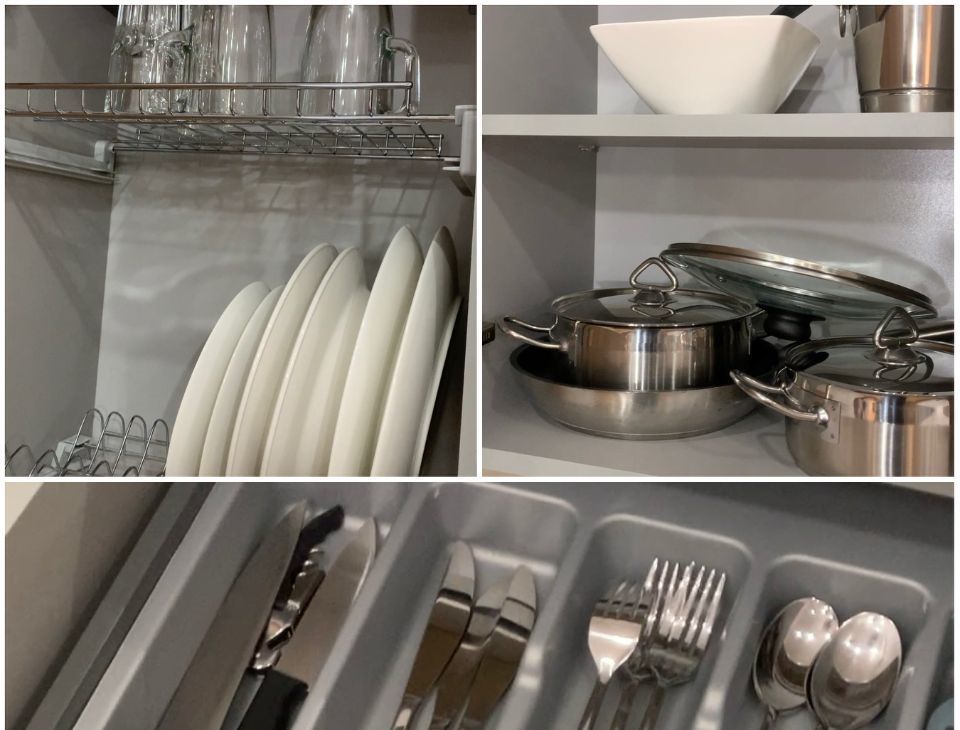 - полностью укомплектована не только всей техникой, но также посудой, столовыми принадлежностями и т.д.;