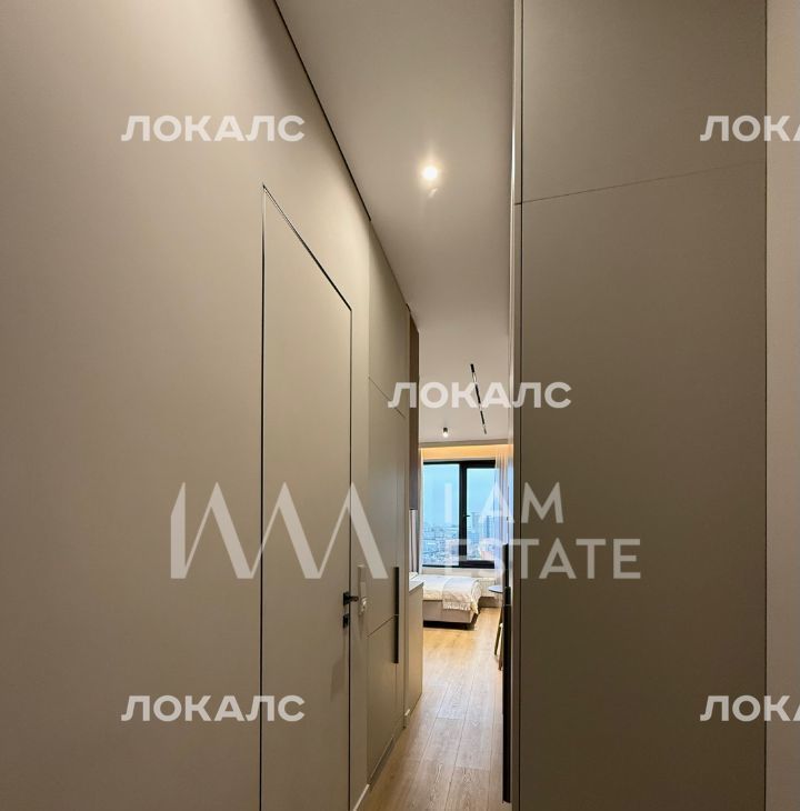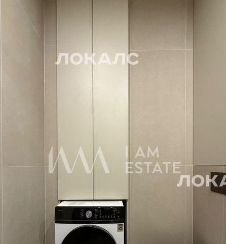 Установлена двуспальная кровать, небольшой диван рядом, много систем хранения — два встроенных шкафа до потолка с антресолями, компактная, но вместительная кухня с полным набором техники в виде посудомоечной машины, духового шкафа, варочной панели, вытяжки, микроволновой печи. В комнате установлен телевизор Яндекс ТВ. В ванной комнате установлен большой шкаф в потолок для хранения хозяйственных вещей, а также стиральная машина.