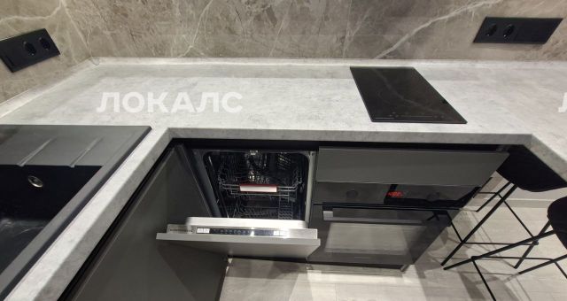 Квартира полностью меблирована и готова к заселению. В комнате и на кухне есть вся необходимая мебель, а также современная техника: холодильник, посудомоечная и стиральная машины. Санузел совмещённый и оборудован душевой кабиной, что очень удобно для студийного формата. Интерьер выполнен в современном стиле, создавая атмосферу уюта и комфорта.