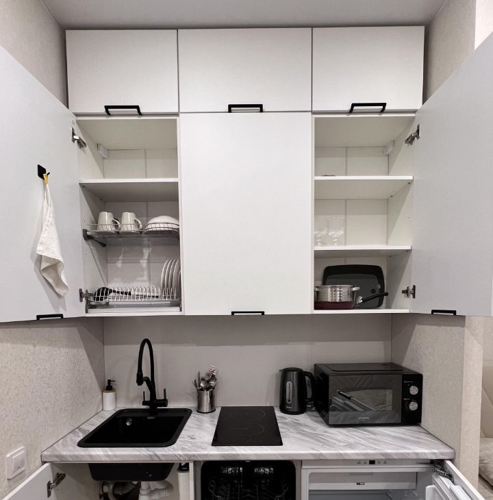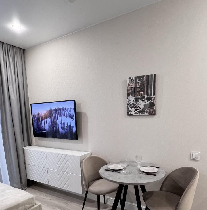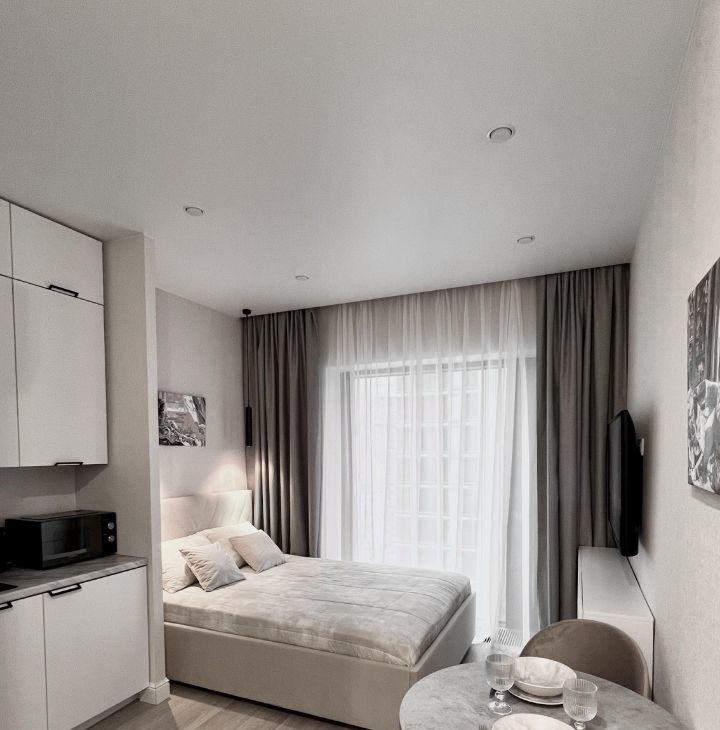 Встроенная техника, кондиционер, посудомоечная машина, фильтры для воды, стиральная машина, телевизор smart-tv с подключенным интернетом, кровать 140 см и всё необходимое для комфортного проживания (утюг, гладильная доска, сушилка, посуда).