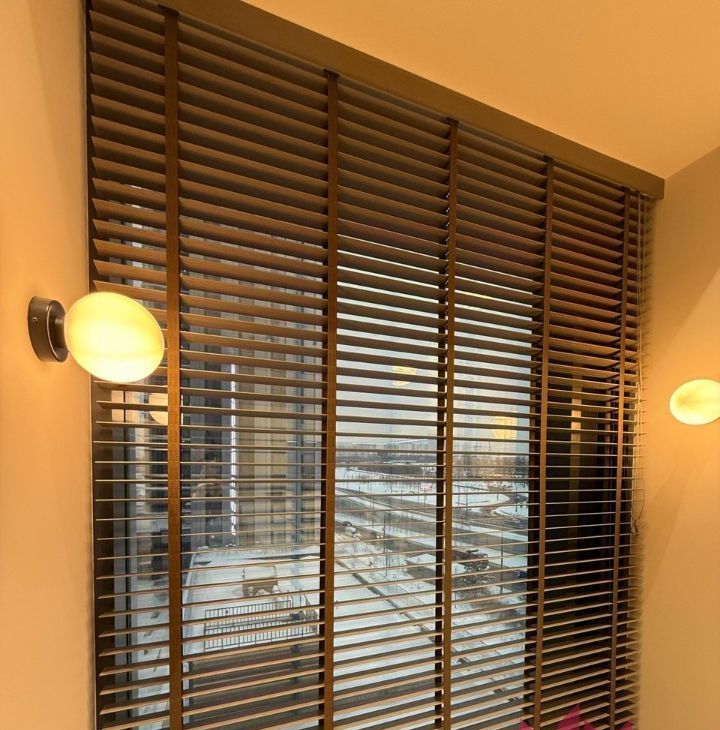 Теплый пол по всей территории студии, регулируемые жалюзи на окнах.
