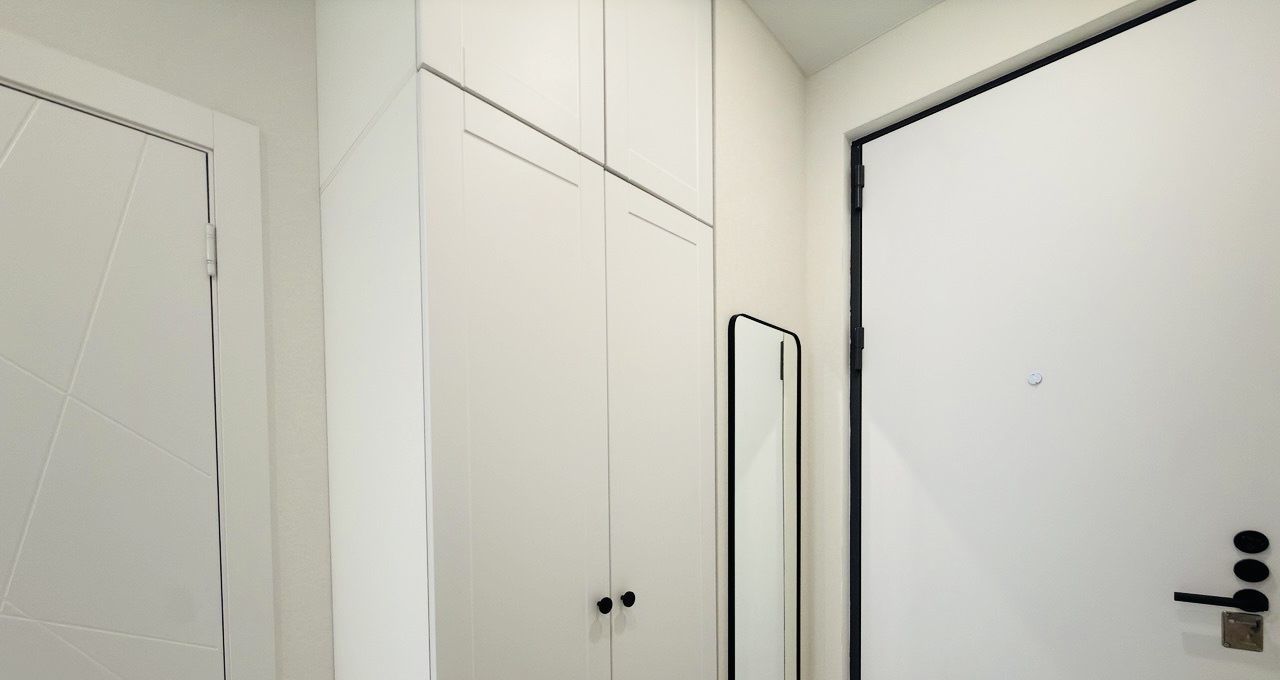 Три вместительных шкафа в прихожей с антресолями в потолок не загромождают пространство студии.