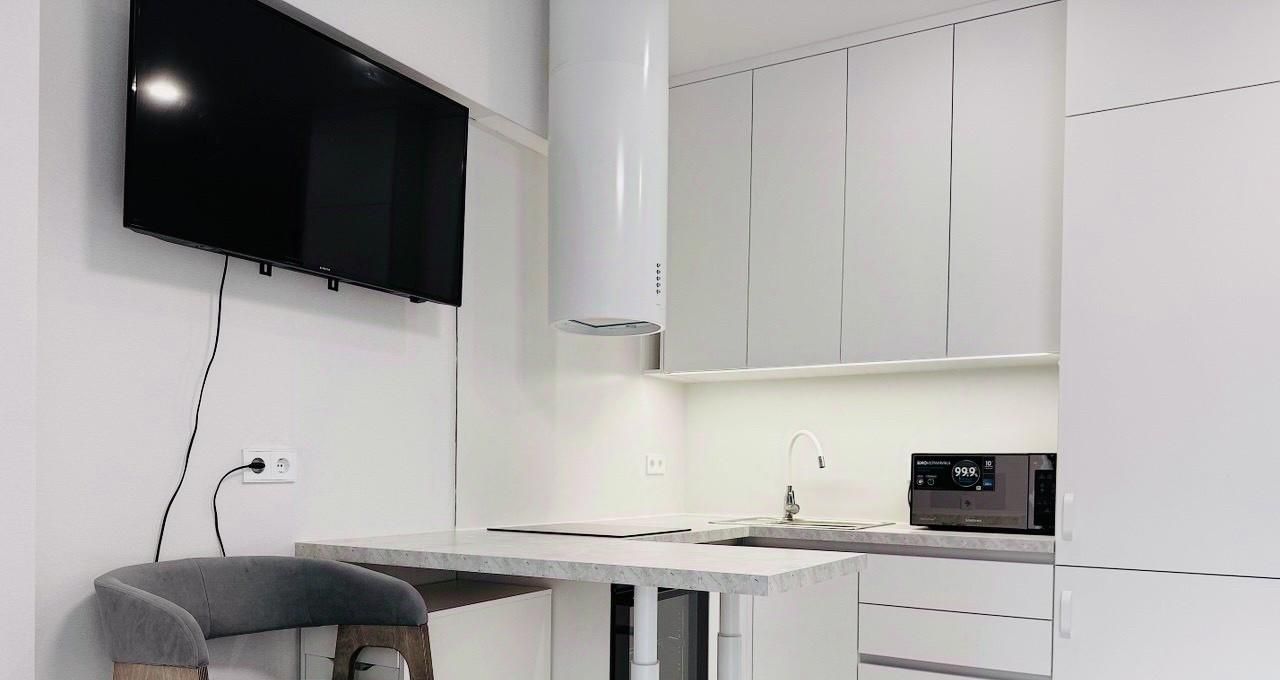Студия полностью меблирована, оснащена необходимой техникой и готова к проживанию.