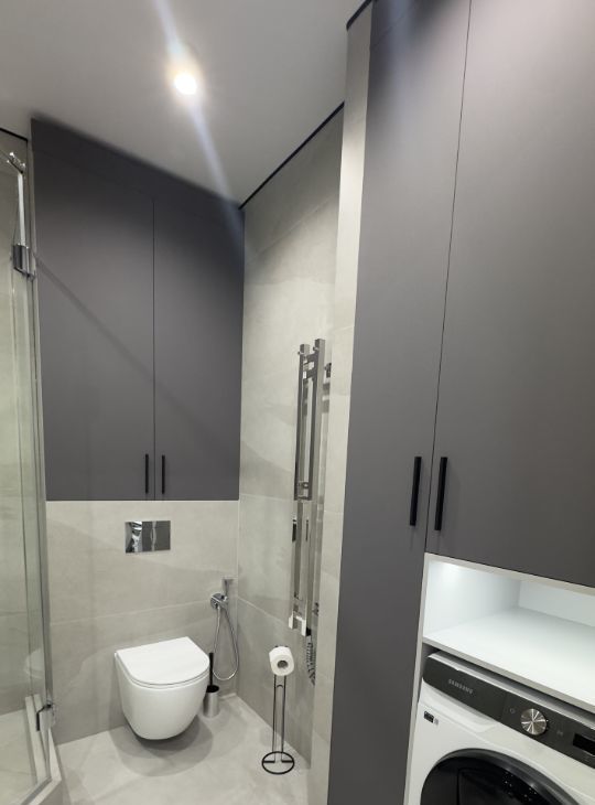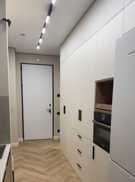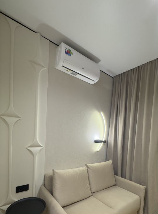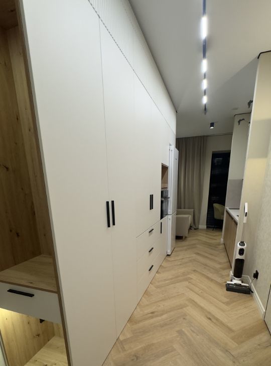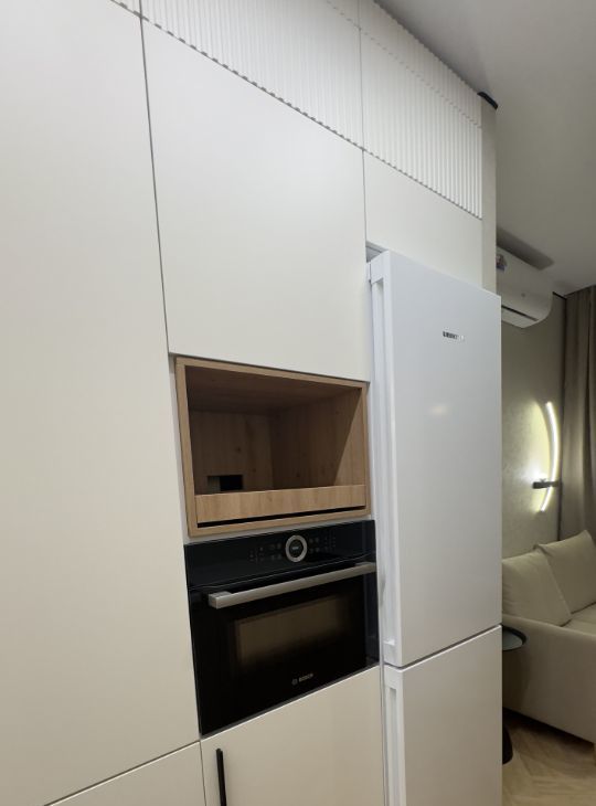 изолированная спальня с кроватью, обеденная зона и зона кухни, удобная система хранения, встроенная бытовая техника ( посудомойка, плита, духовка, микроволновка, стиральная машина с функцией сушки , холодильник, кондиционер, бризер, телевизор )